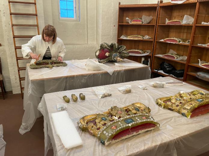 I udstillingen kan du også opleve et gips- og konservatorværksted og komme tættere på de processer, der ligger bag bevaring og restaurering af de skulpturer og den kunst, der gennem tiden har prydet Rådhuset og dets omgivelser. Her kan du nogle dage også møde konservatorer fra Københavns Museum.